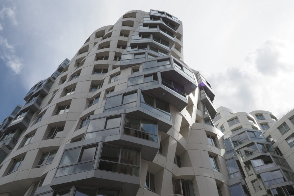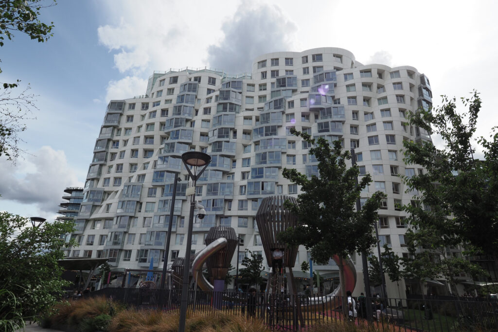 隣接して、ザハ・ハディド設計の集合住宅。