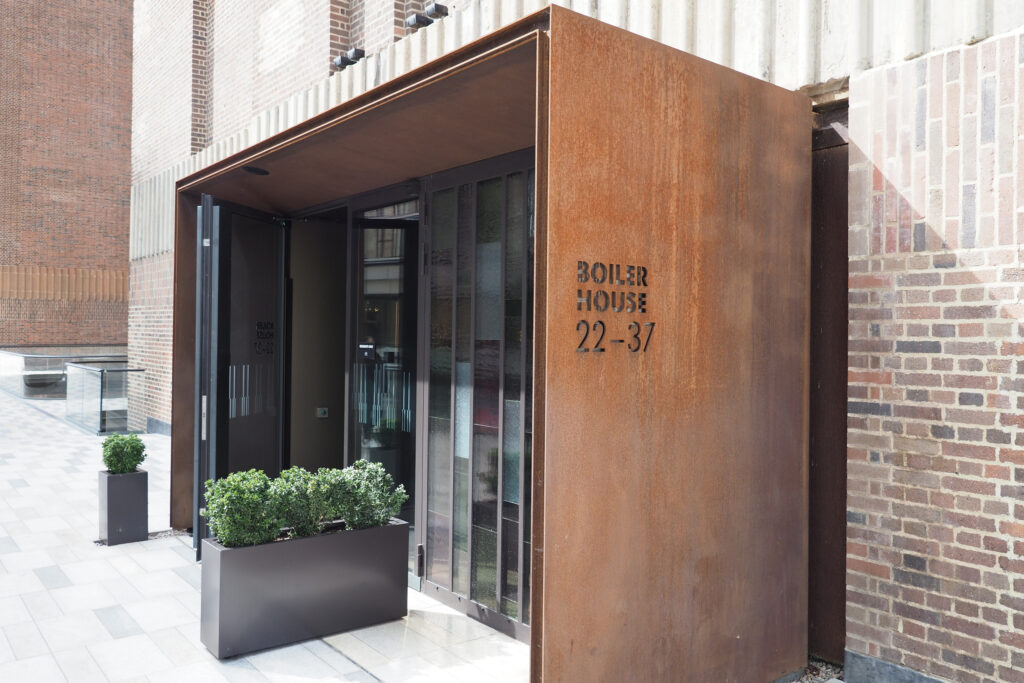 入口に設置されていた、コールテン鋼で作られた門型のポーチ。
